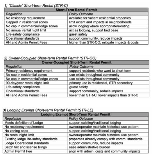 The vote will be to change who is eligible for short-term rental (STR) permits as of January 1, 2023. If the vote passes, STR permits will only be issued to a natural person, not an LLC or another type of ownership entity. Those who already have valid STR permits in 2022 will be eligible for annual renewal, pending regulation compliance, tax remittal and by proving the permit was used legally in the course of the previous year. Fees for short term rentals will also be increased from $150 per year as follows plus the cost of a business license: